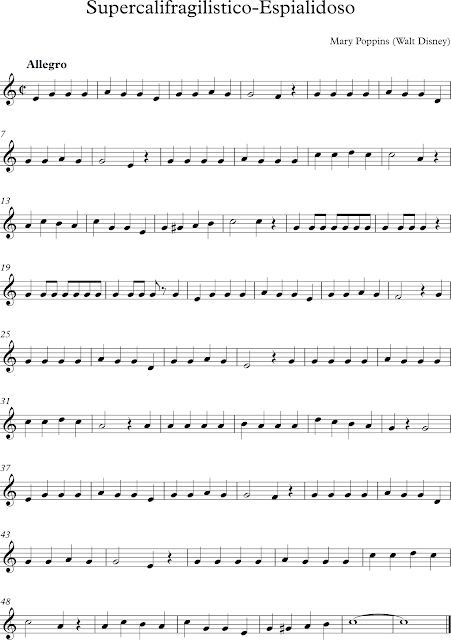 23:00Supercalifragilistico-Espialidoso. Partitura para flauta dulce. De la película Mary Poppins de Walt Disney. La podemos trabajar a partir de 5º de Primaria.